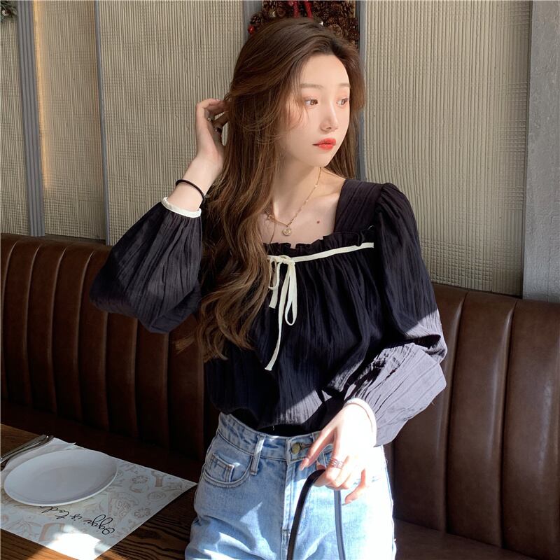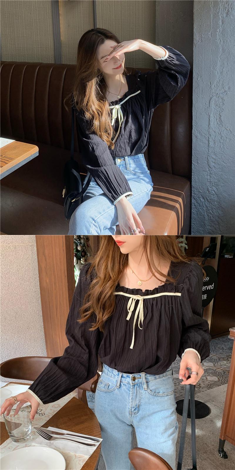 カラーブラウス レディーススタイルショートシャツ オータムウィンター ロング 秋物 冬物 スクウェア モンロー19657818175