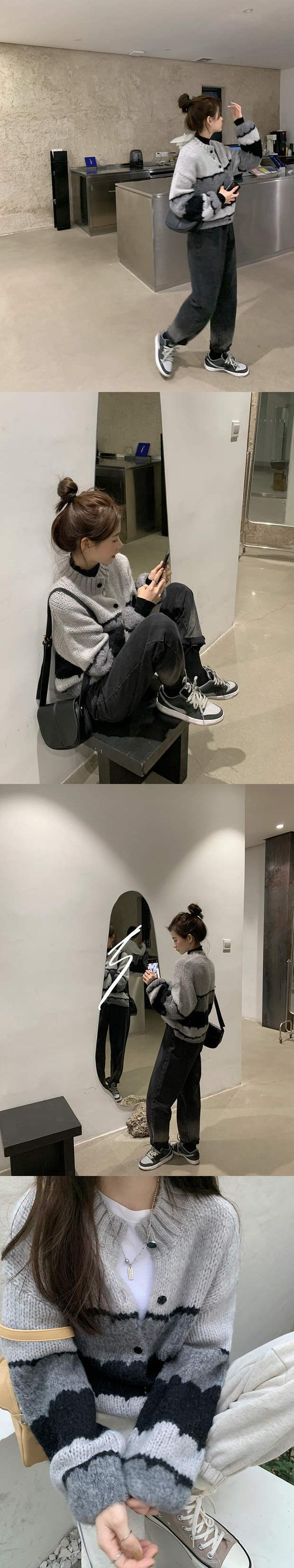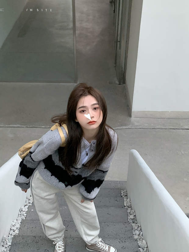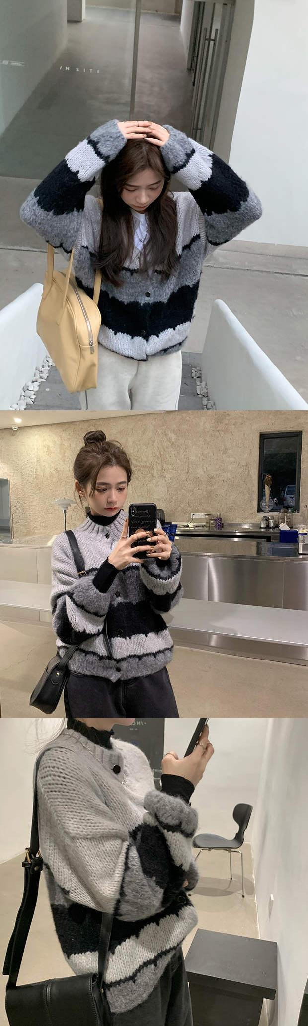 スタイルストライプセーター ジャケット レディースルーズニットカーディガンスプリングショートトップス 春物 モンロー3928267682