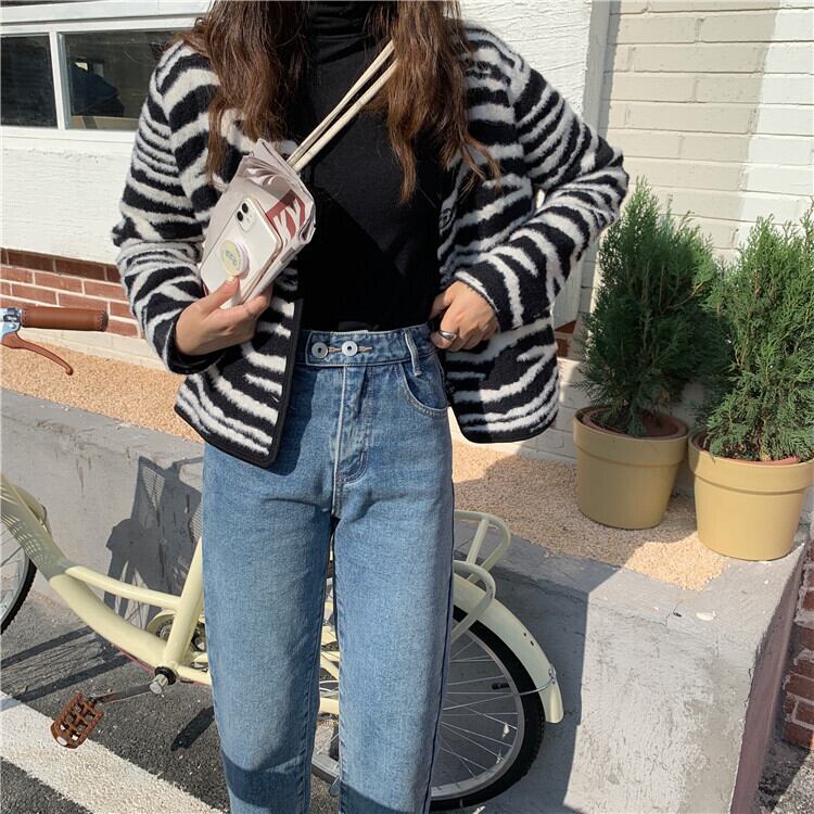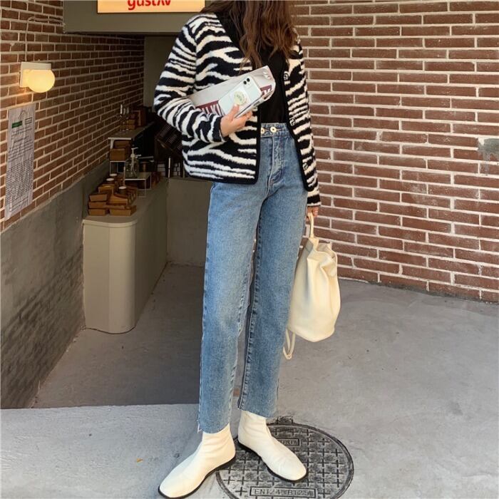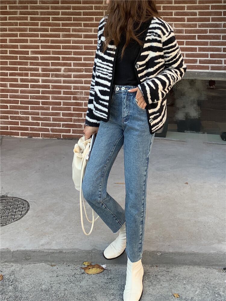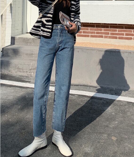 ジーンズ ルーズクロップドオータムウィンターハイウェスト薄手パンツ 秋物 冬物 モンロー21225715906