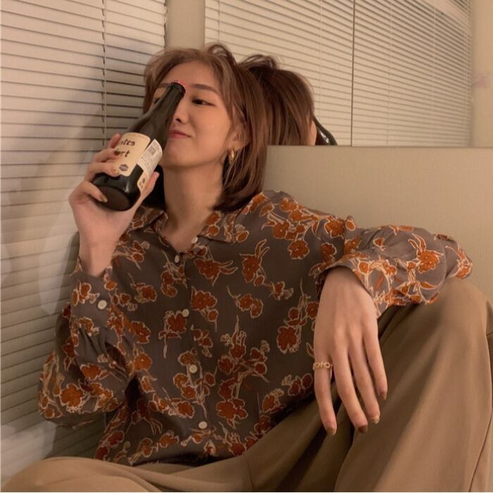 スタンダードFlowerデザイン シャツ レディースオータムウィンタートップス ルーズジャケット ロング レトロ 秋物 冬物 フラワーデザイン モンロー93457603494