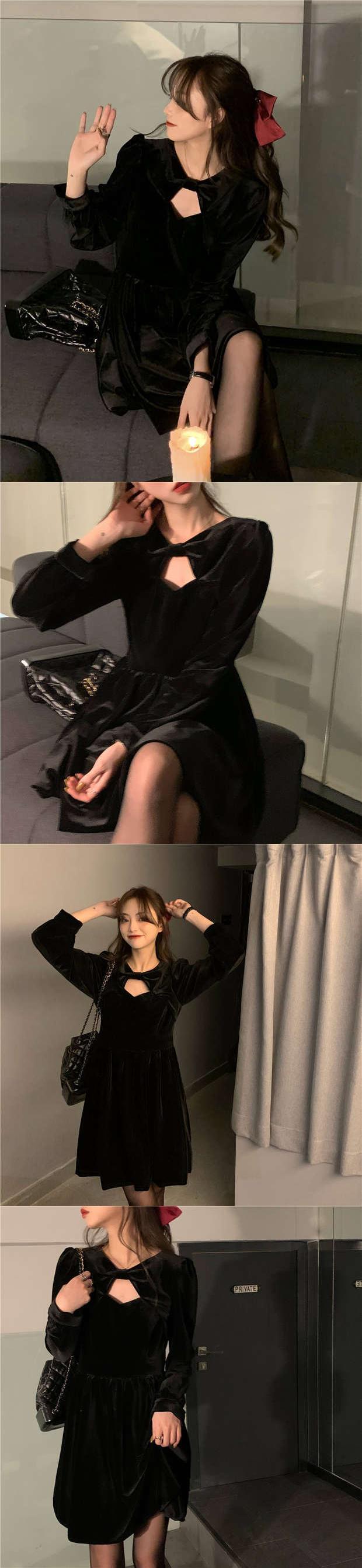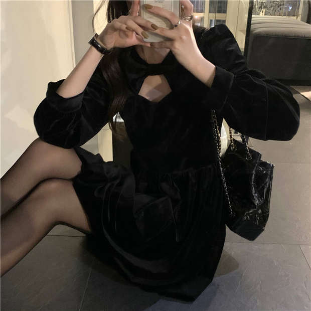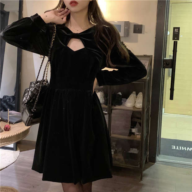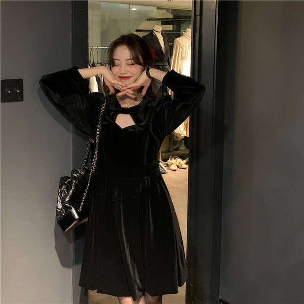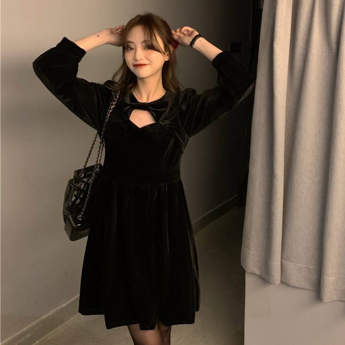 ベルベットドレス オータムウィンタースカート ブラックAライン 秋物 冬物 モンロー86822320313
