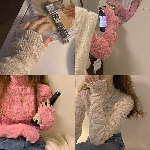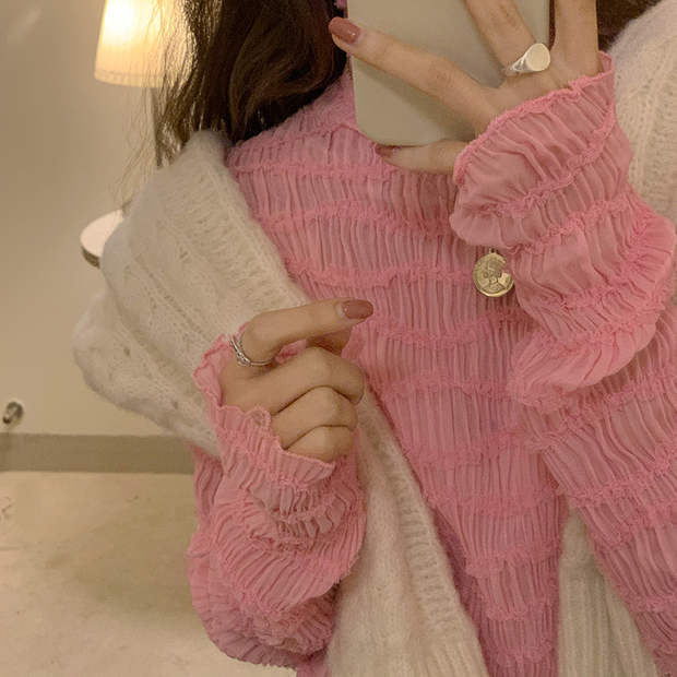 ブラウス レースシャツ オータムウィンターメッシュシフォン ロング 秋物 冬物 モンロー87562141785