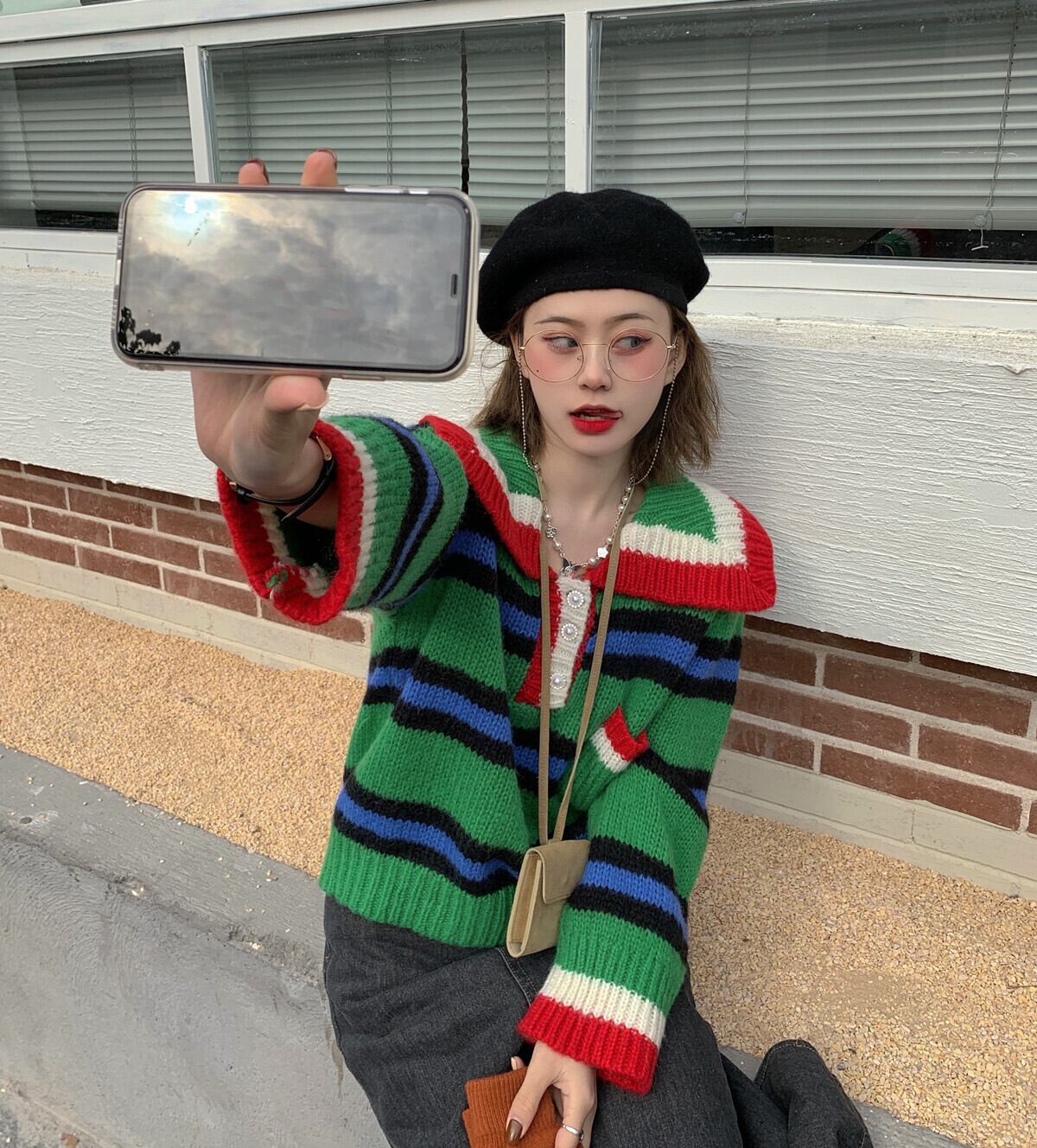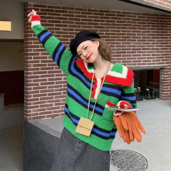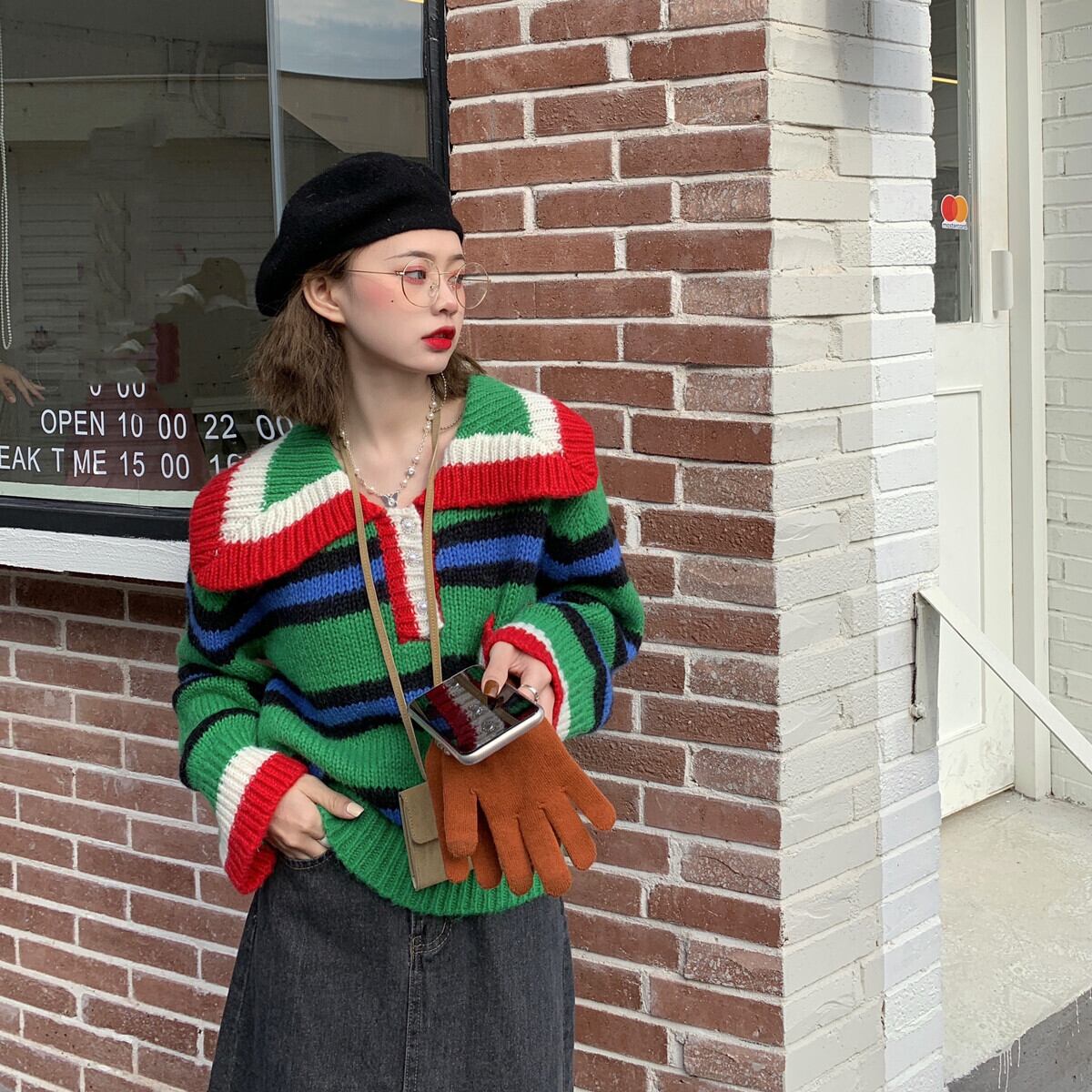 セーター スタイルルーズオータムウィンターショートトップス 秋物 冬物 モンロー87159550557