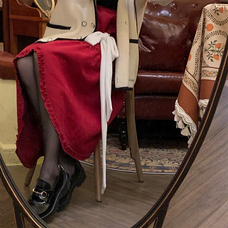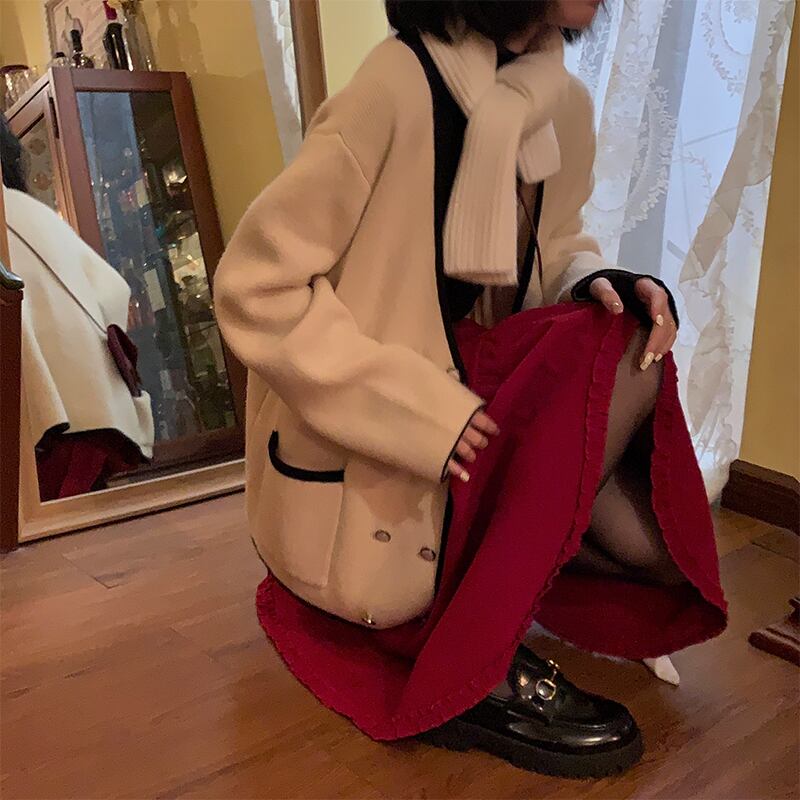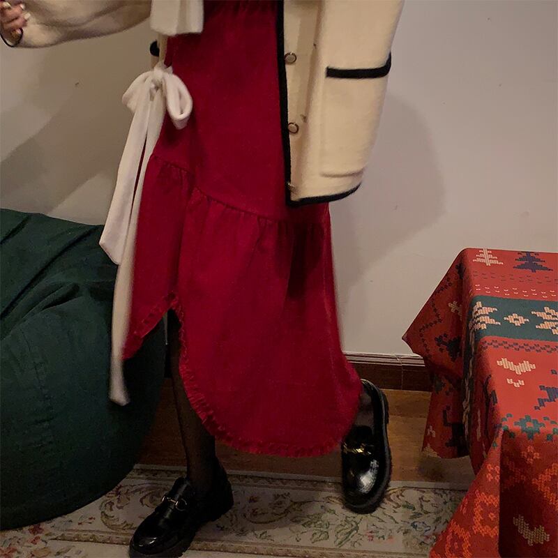 コーデュロイスカート レディースウィンターセーター Aラインハイウェストウェストロングオータム 秋物 冬物 モンロー3423092828