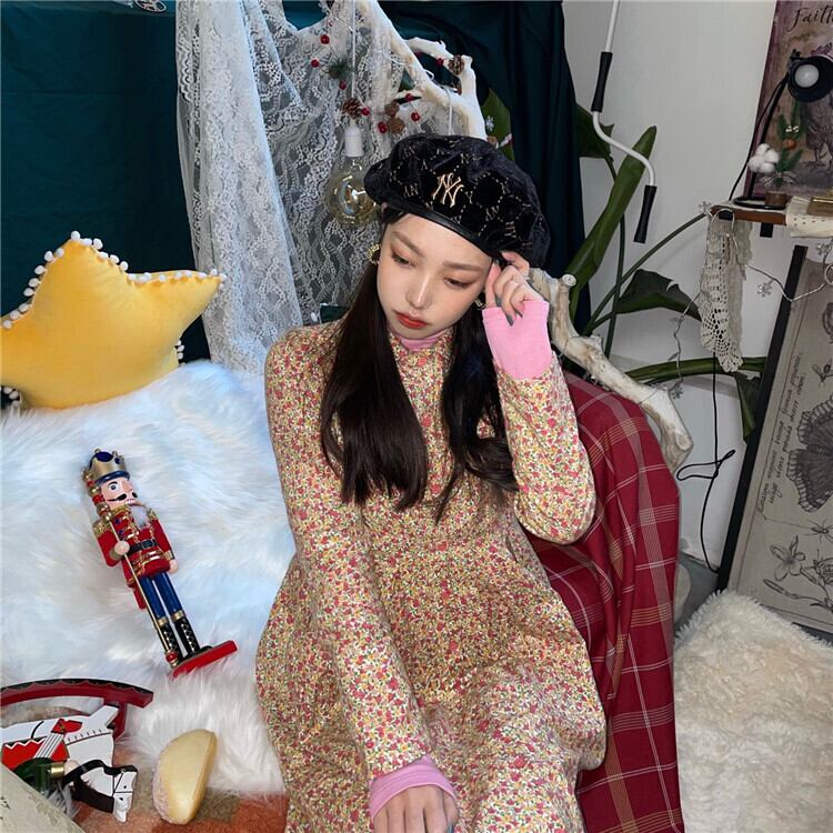 スタンダードフローラルドレス スカート オータムウィンターロング レトロ 秋物 冬物 花柄 モンロー75701808918