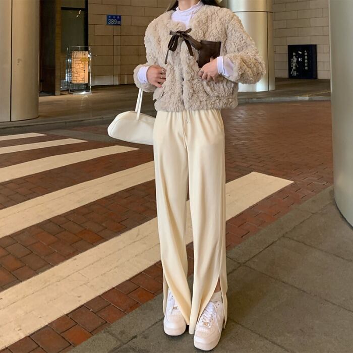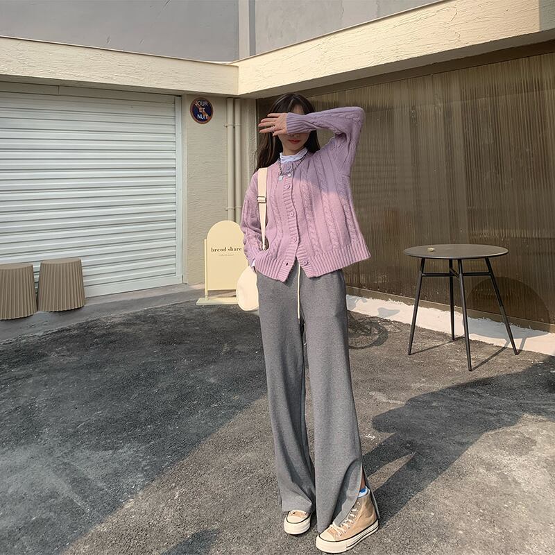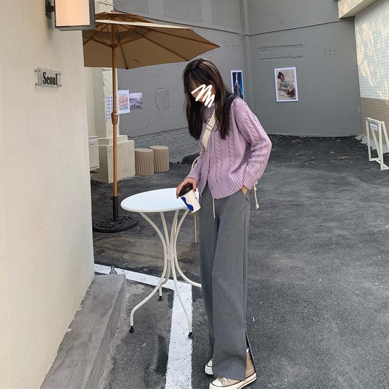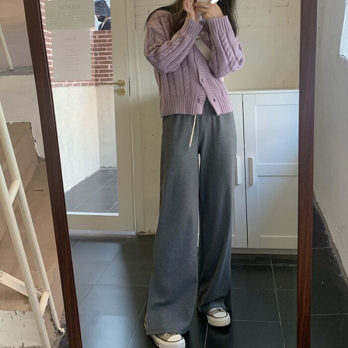 グレーパンツ ハイウェストカジュアルオータムウィンタールーズ 秋物 冬物 モンロー74095858094