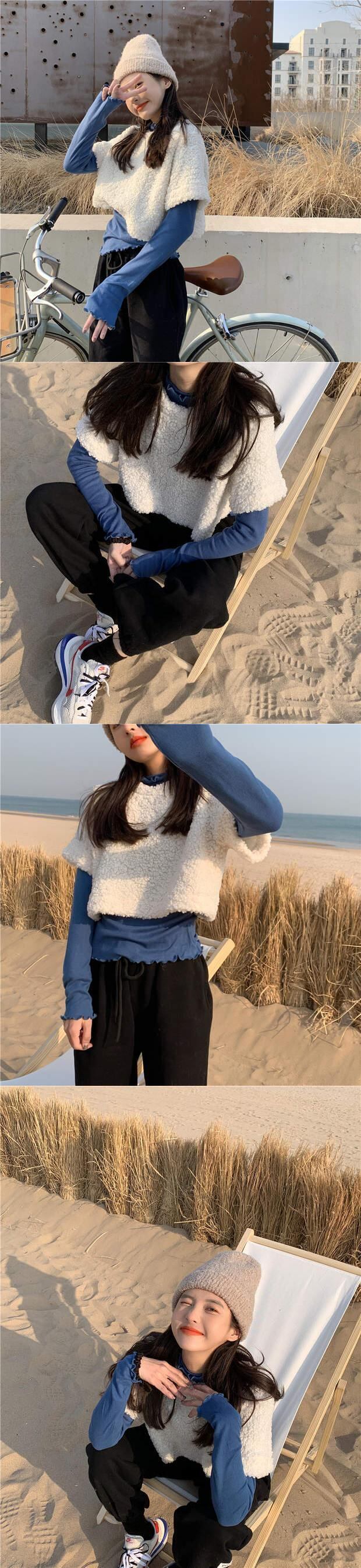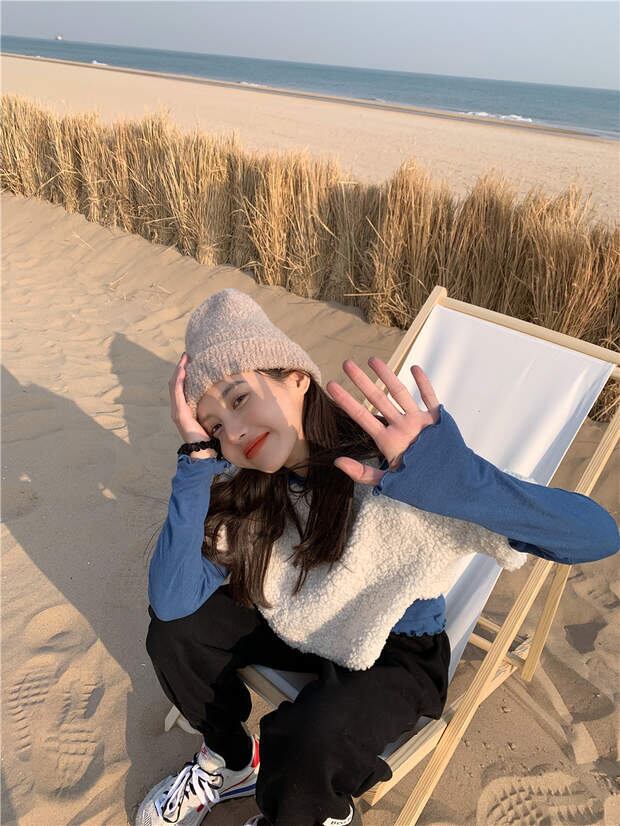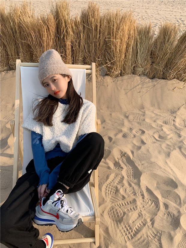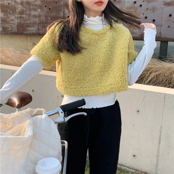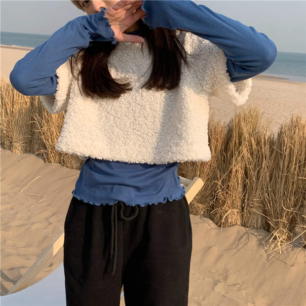ウールショートTシャツ シャツ ルーズトップス レッド ウィンター 冬物 モンロー19329742943