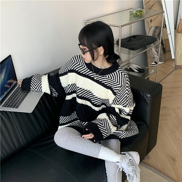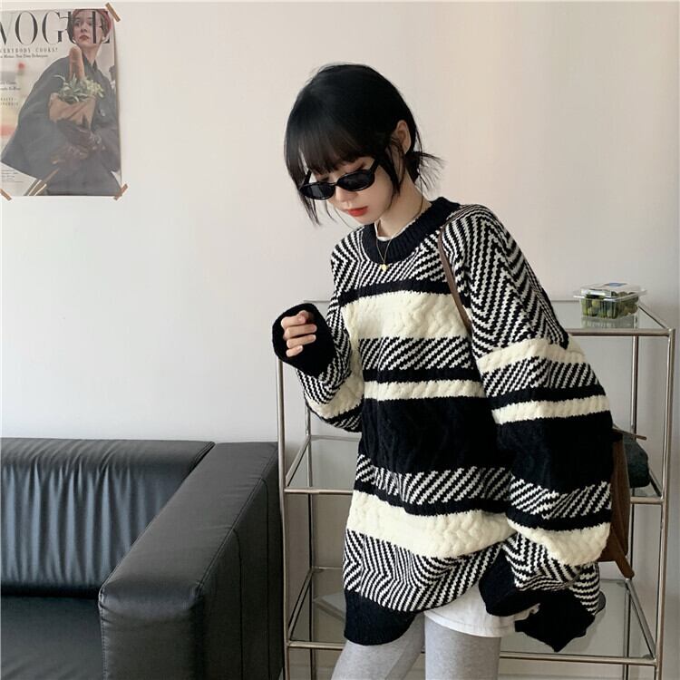 ストライププルオーバー セーター ジャケット レディーススタイルウィンタールーズトップス 冬物 モンロー90131126130