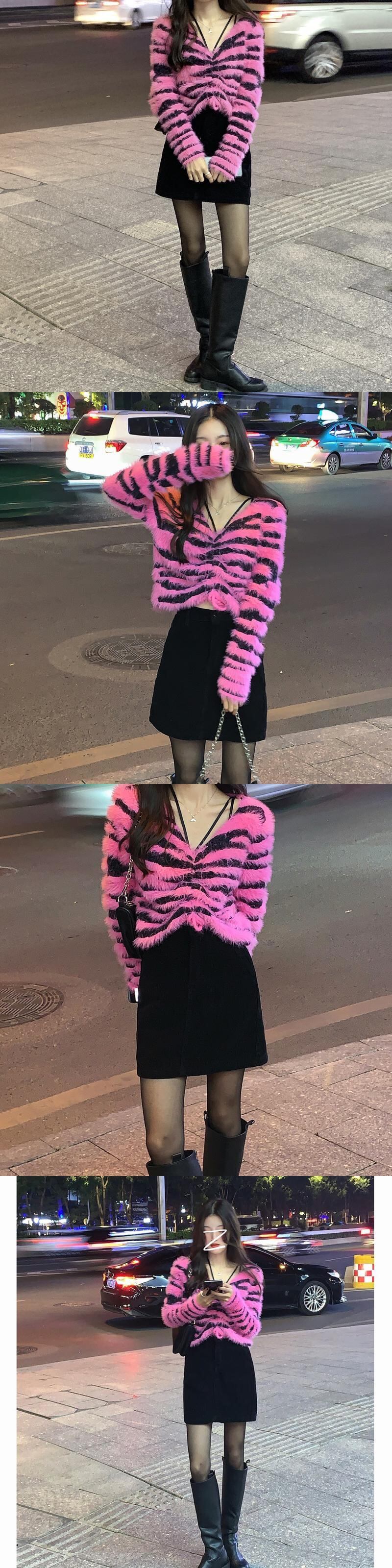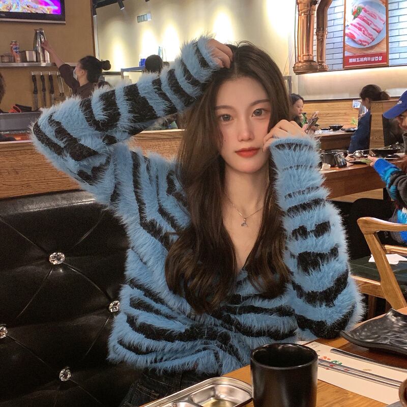 パターンVネックセーター レディーススタンダードスタイルクロップドトップス オータムウィンタールーズ レトロ 秋物 冬物 モンロー67625829242