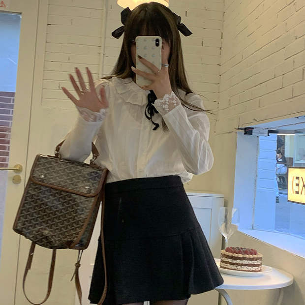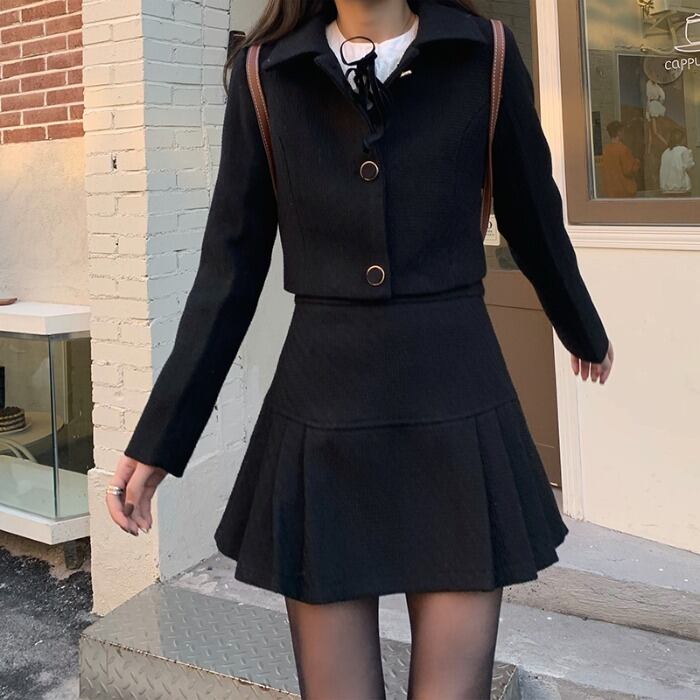 色:黒のコート10880,黒のスカート10881,白いシャツ10889