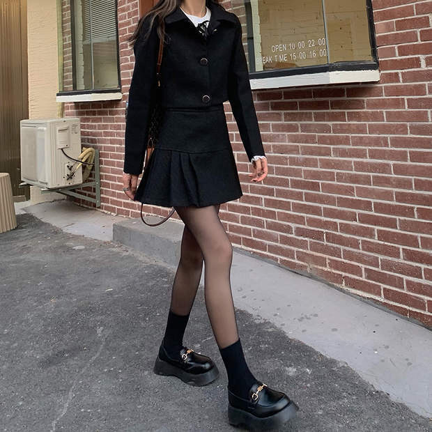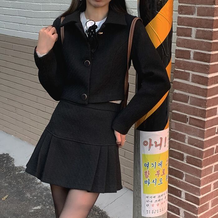 スタンダードスタイルブラックジャケット レディースオータムウィンターショートトップス カジュアルカーディガン レトロ ストリート 秋物 冬物 モンロー40819836772