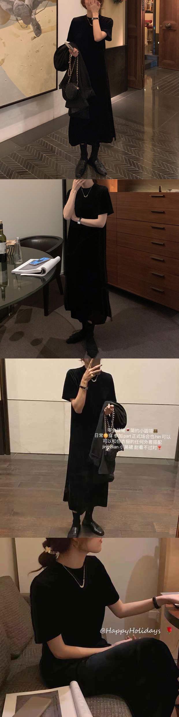 ブラックドレス スプリングスカート ロング 春物 モンロー88215060769