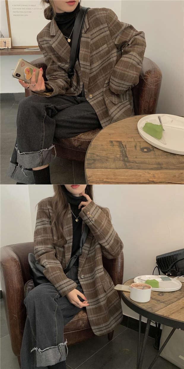 ルーズ格子柄ジャケット オータムウィンターカジュアル 秋物 冬物 モンロー83204600957