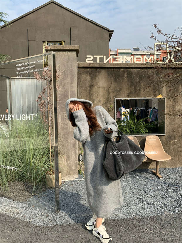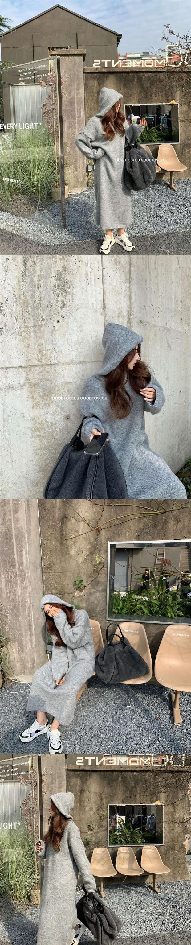 スタイルルーズプルオーバー スプリングウィンターフードセーター トップス ロング 春物 冬物 モンロー48884924755