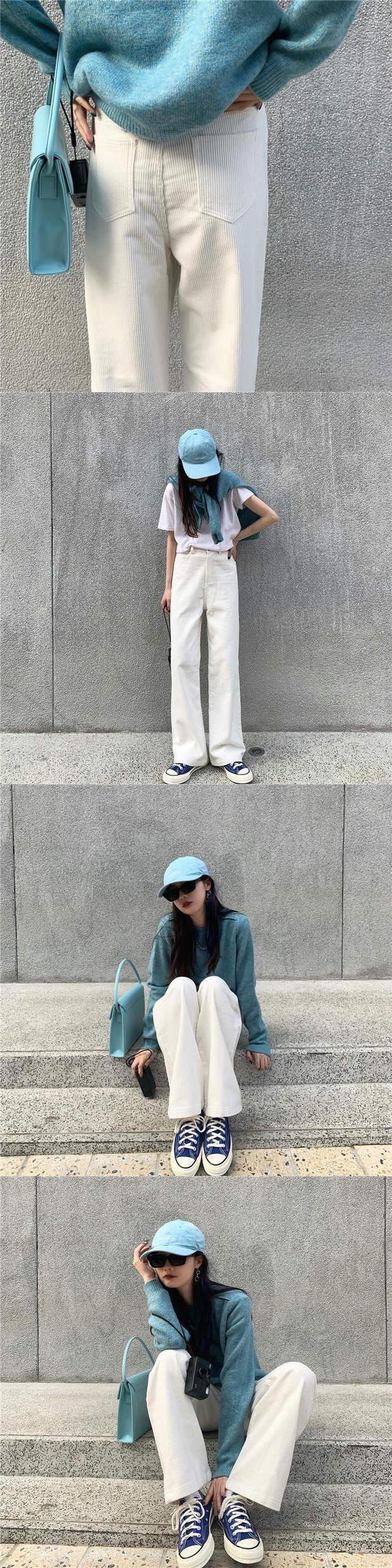 コーデュロイカジュアルパンツ ルーズハイウェストウェストスプリングウィンターワイドレッグ 春物 冬物 ワイドパンツ モンロー40628622982