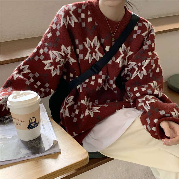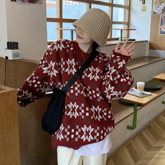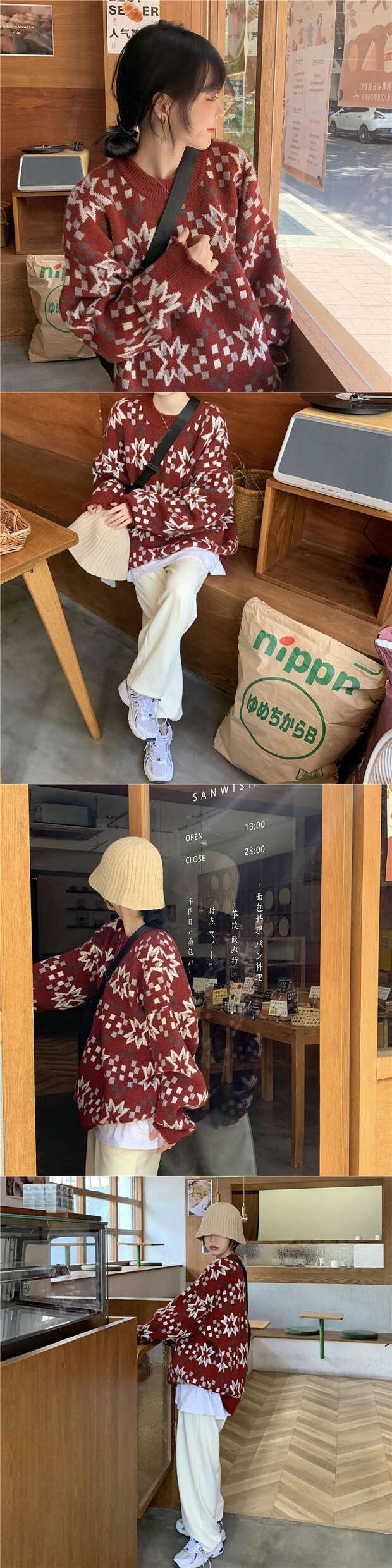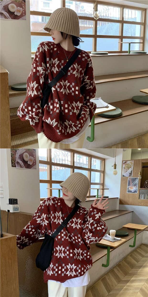 ルーズラウンドネックプルオーバー セーター オータムウィンタースタンダードスタイルコート ジャケット ロング レトロ 秋物 冬物 Oネック モンロー21507780386