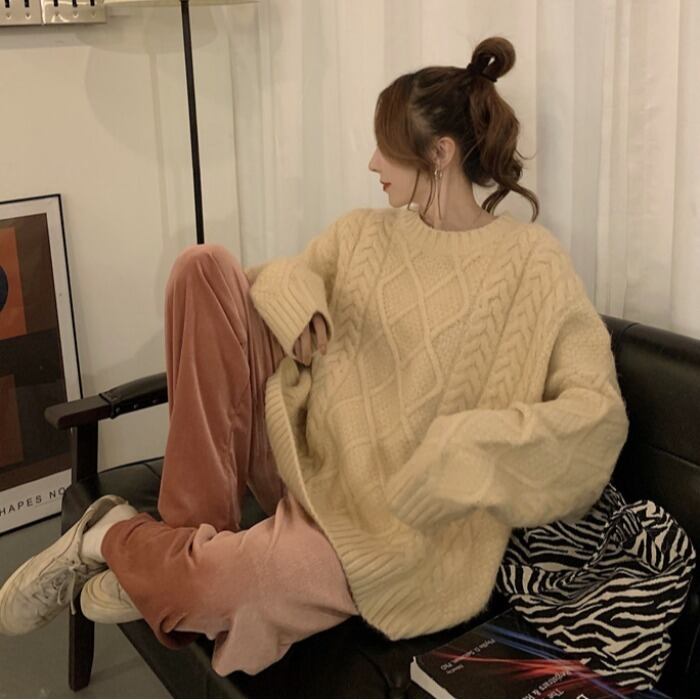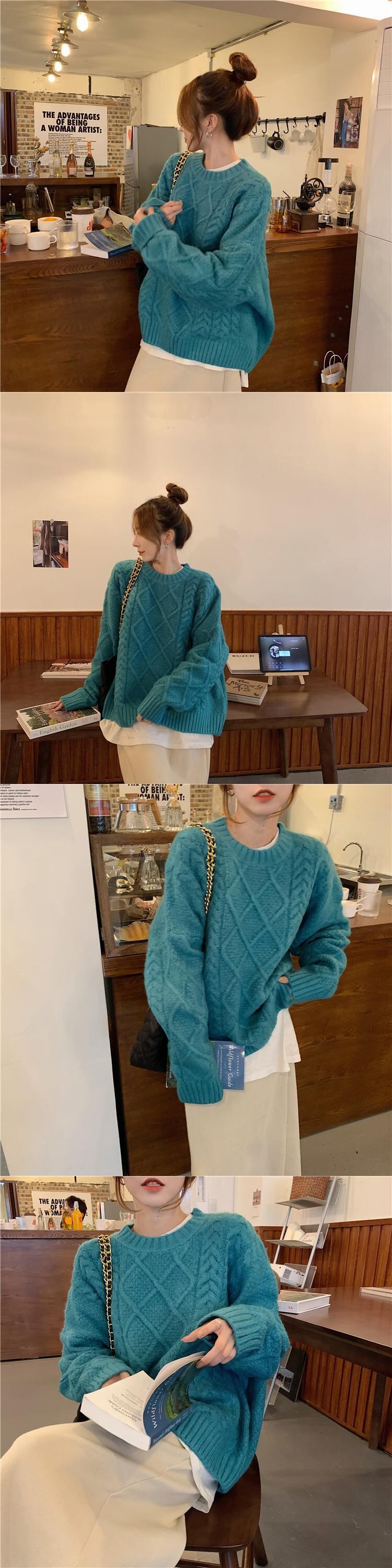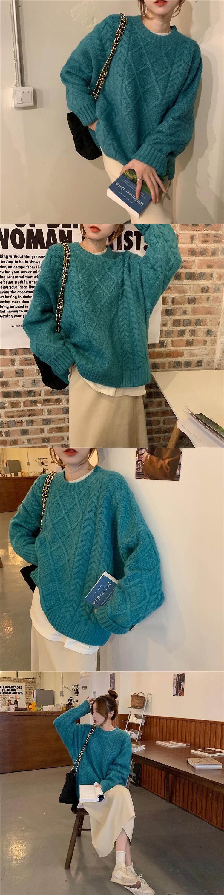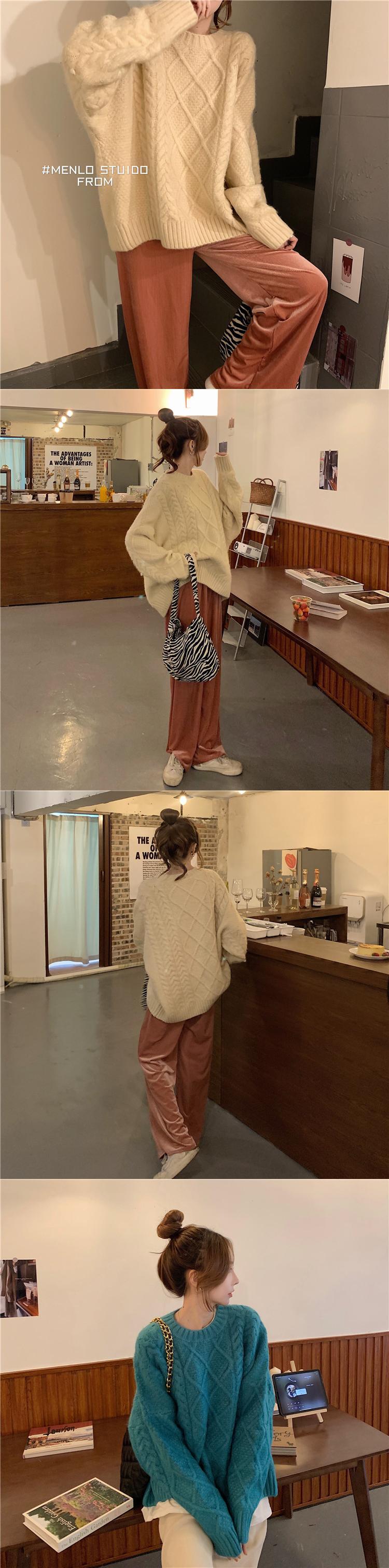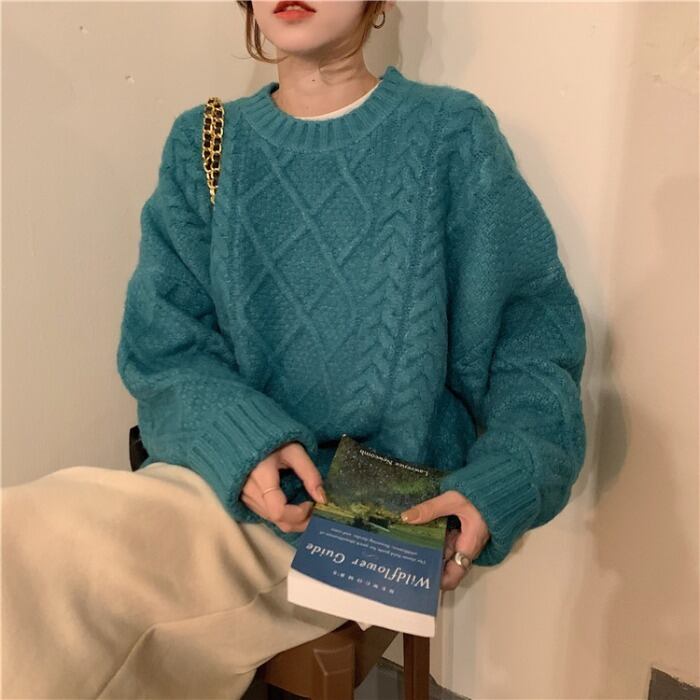 ラウンドネックプルオーバー セーター スプリングウィンタースタイルルーズコート ジャケット ロング 春物 冬物 Oネック モンロー58992515940