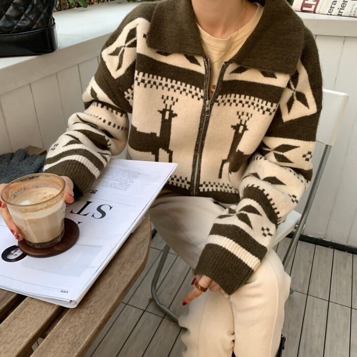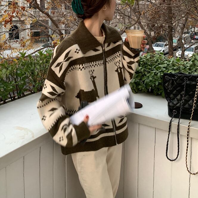 セーター ジャケット スタイルルーズカーディガンオータムウィンタースタンダードニットトップス レトロ 秋物 冬物 モンロー97962209479