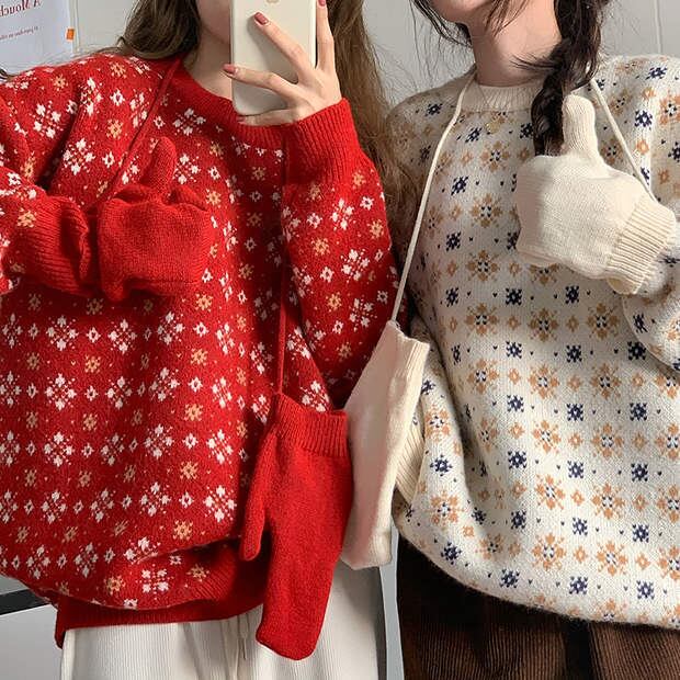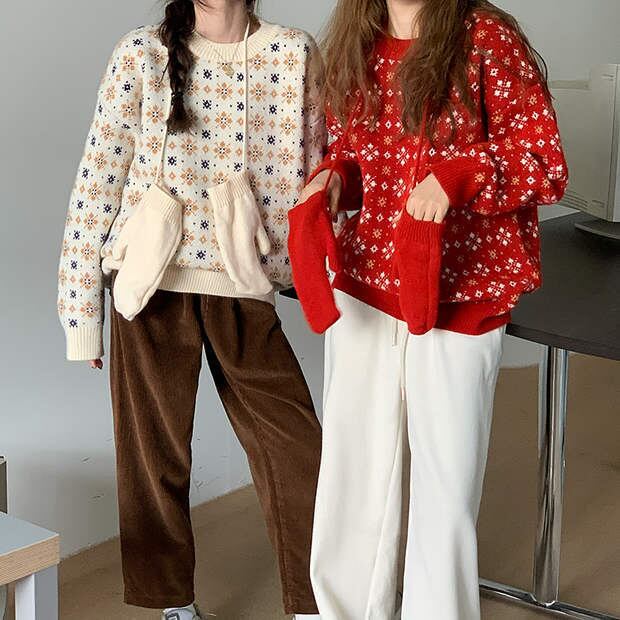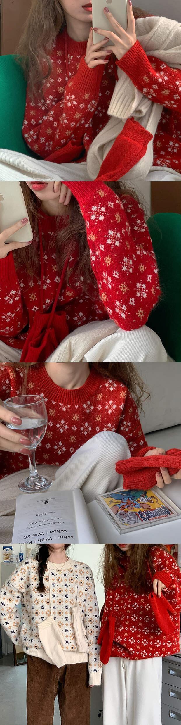 色:赤いセーター,白いセーター