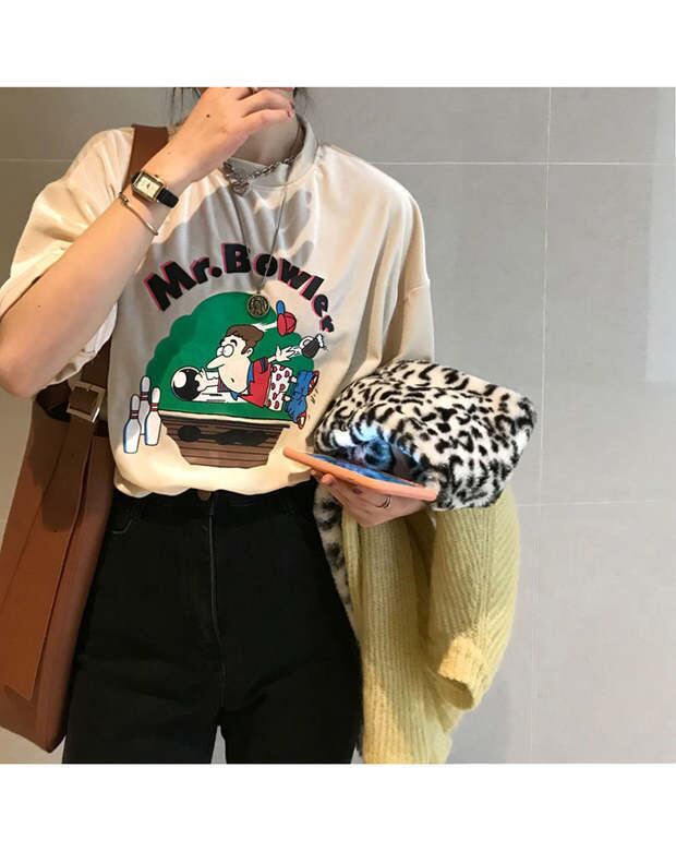 シャツ オータムウィンターラウンドネックTシャツ ルーズショートトップス 半袖 ハーフスリーブ 秋物 冬物 Oネック モンロー96634916269