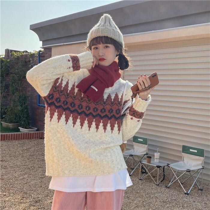 ルーズプルオーバー セーター オータムウィンタースタイルニットコート ジャケット 秋物 冬物 モンロー80418935384