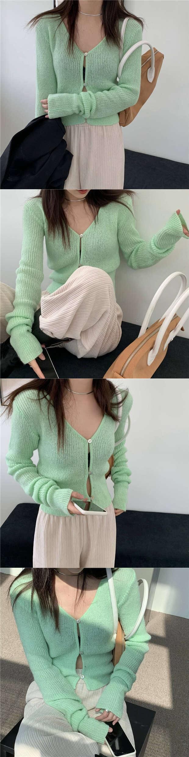 ショートセーター Vネックカーディガンジャケット オータムウィンタートップス ロング 秋物 冬物 モンロー60319030159