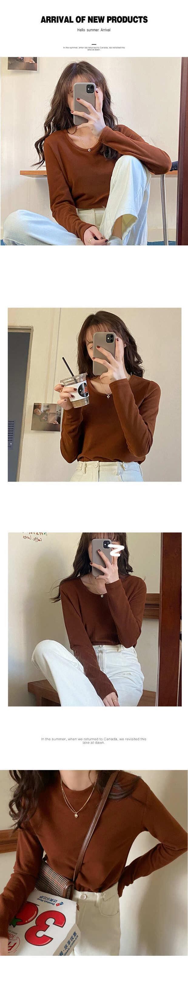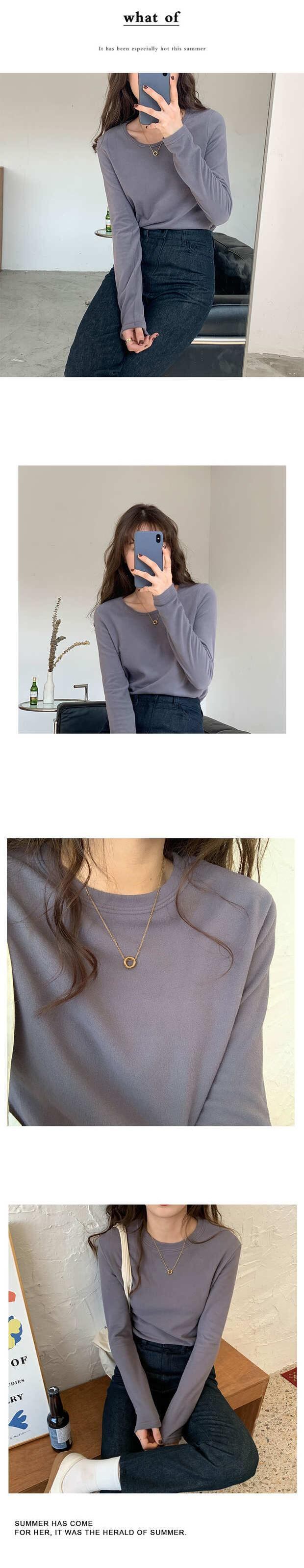 オータムウィンターシャツ レディースルーズトップス スタイルラウンドネックTシャツ ロング 秋物 冬物 Oネック モンロー18294460897