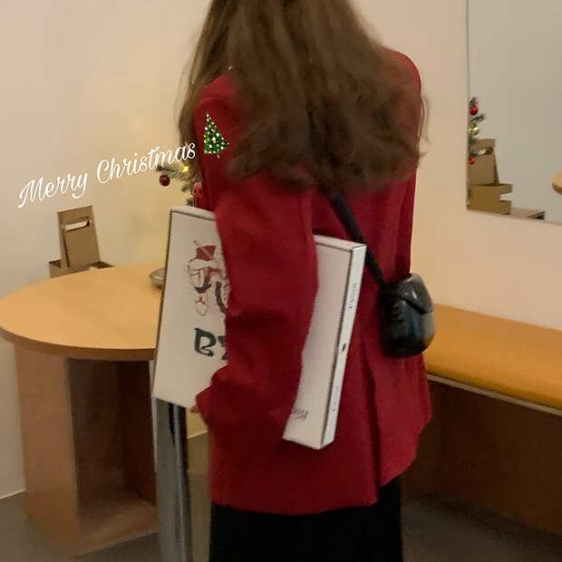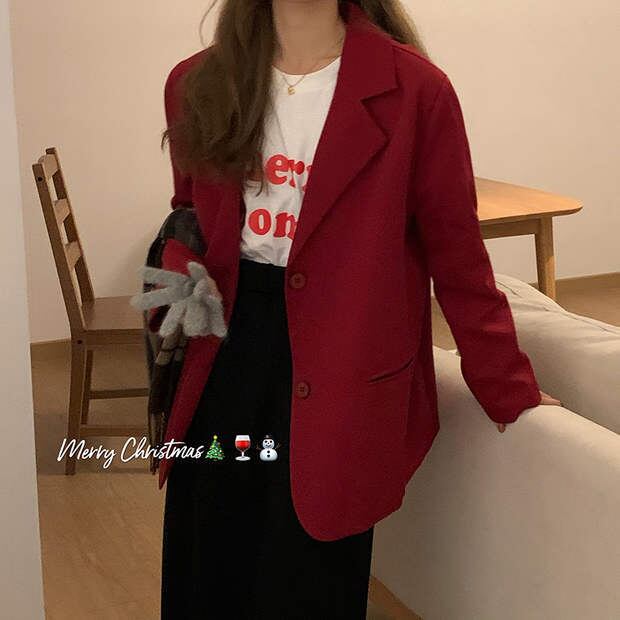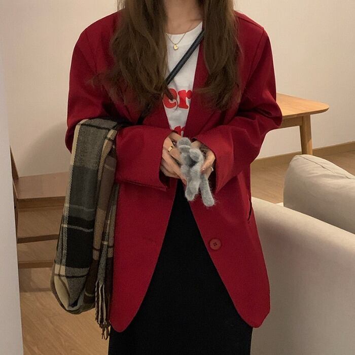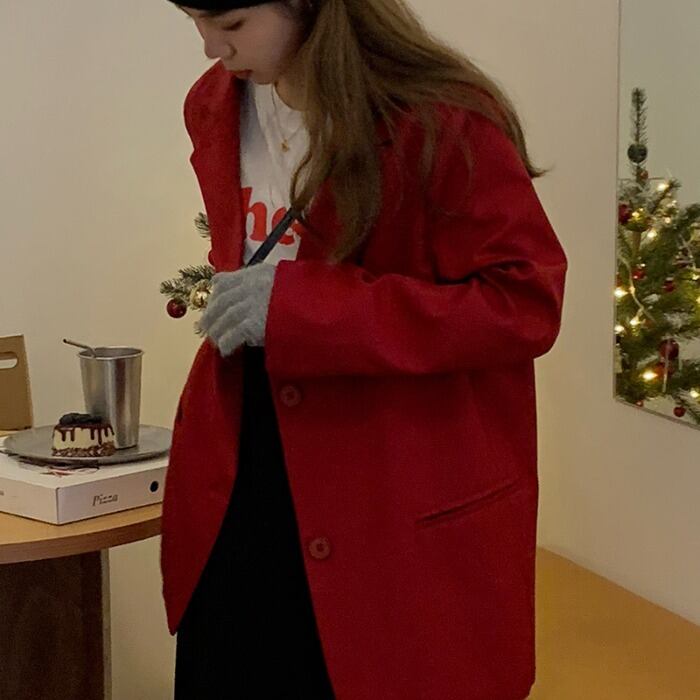 スタンダードレッドブレザー オータムウィンタースタイルルーズカジュアルジャケット レトロ 秋物 冬物 モンロー78507228182