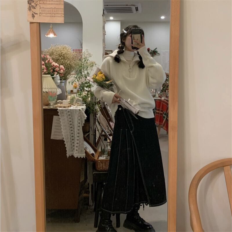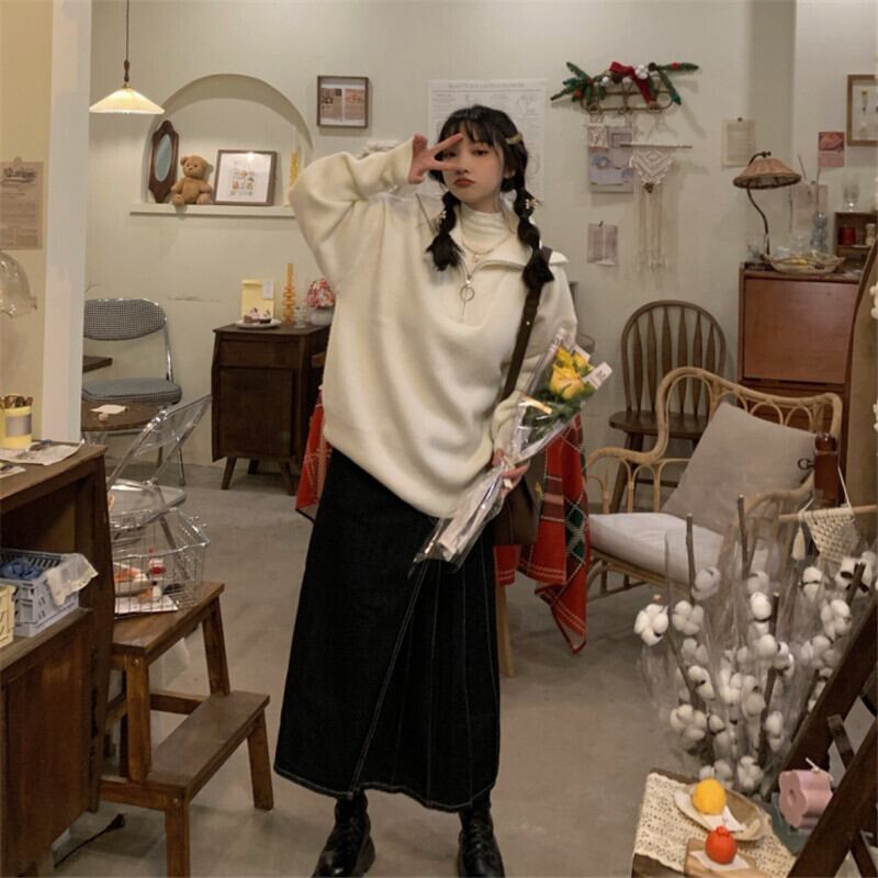 ホワイトセーター レディースルーズオータムウィンタートップス コート ロング 秋物 冬物 モンロー70487914417