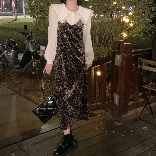 スタンダードフローラルドレス オータムウィンタースカート ロングAライン レトロ 秋物 冬物 花柄 モンロー8484955542