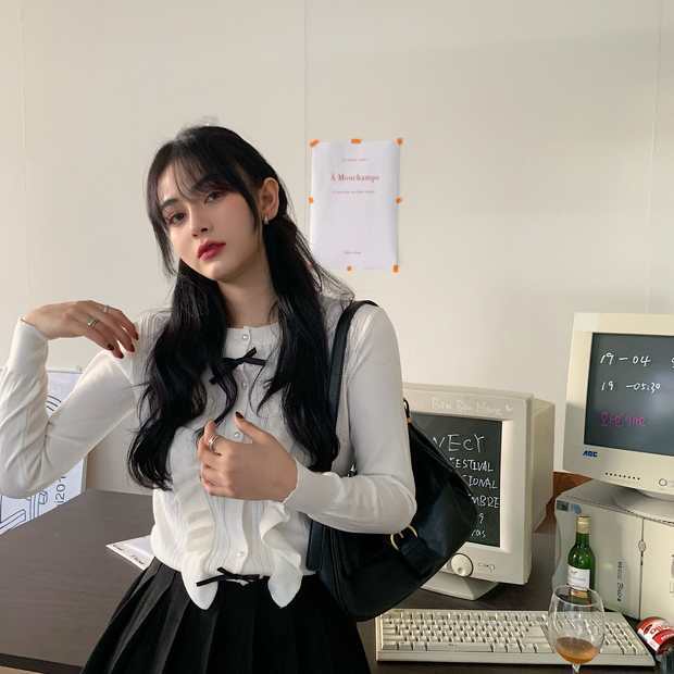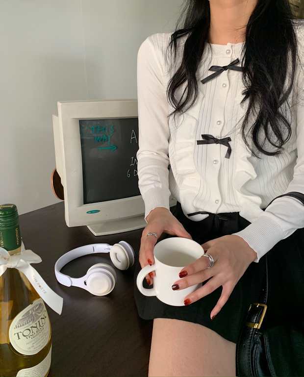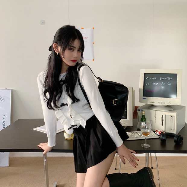 スタンダードショートラウンドネックセーター カーディガンスプリングルーズ長袖スリーブニットジャケット ロング レトロ 春物 Oネック モンロー94716357146
