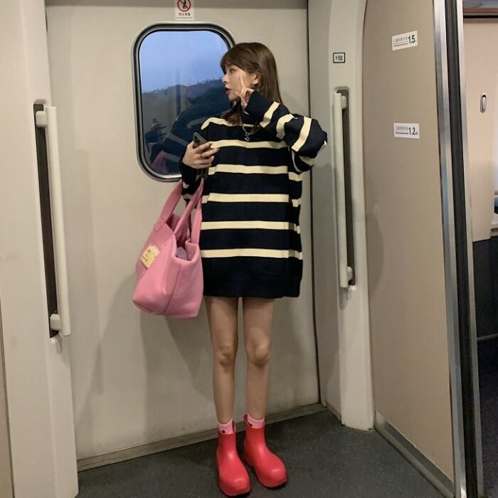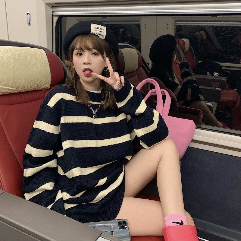 プルオーバー ストライプセーター オータムウィンタースタイルルーズニットコート ジャケット 秋物 冬物 モンロー12357702457