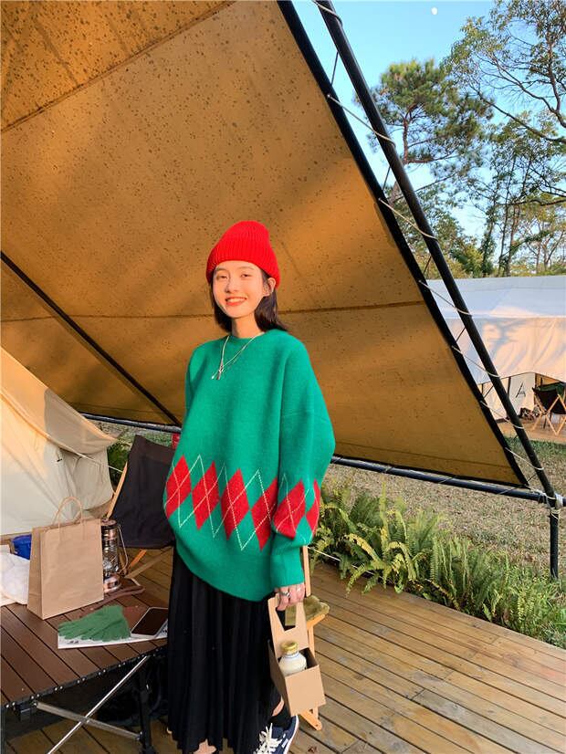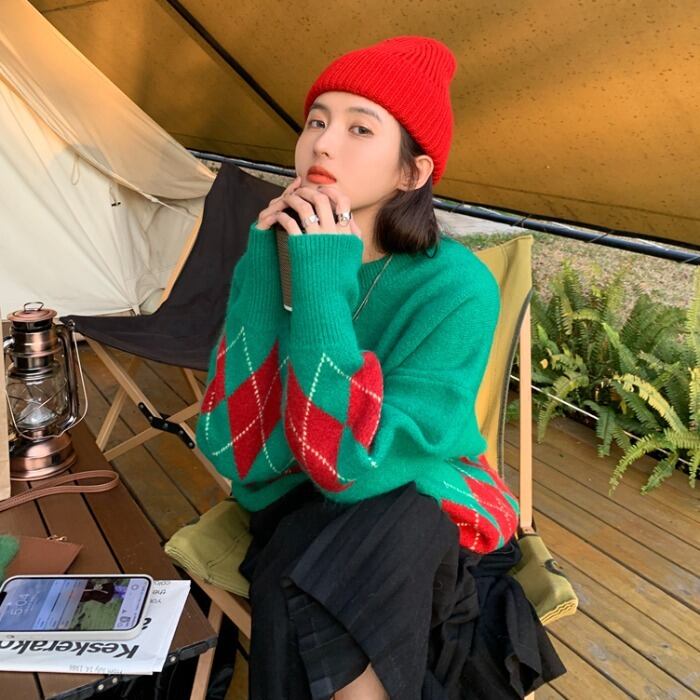 スタンダードルーズプルオーバー セーター オータムウィンタートップス コート ロング レトロ 秋物 冬物 モンロー60930794717