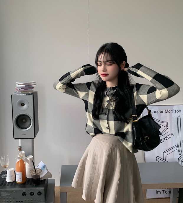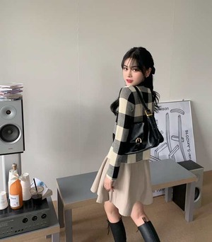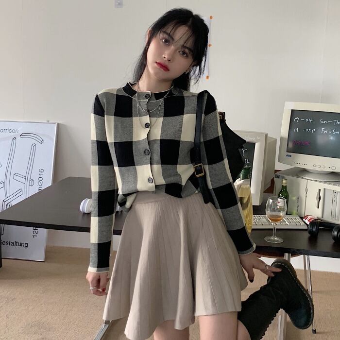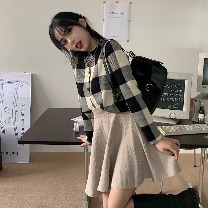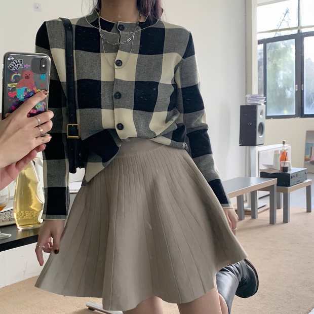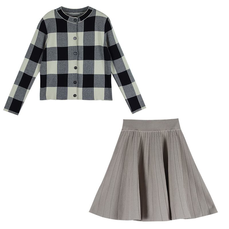 スタンダードスタイルスカート セット オータムウィンターカーディガン レトロ 秋物 冬物 モンロー56501973506