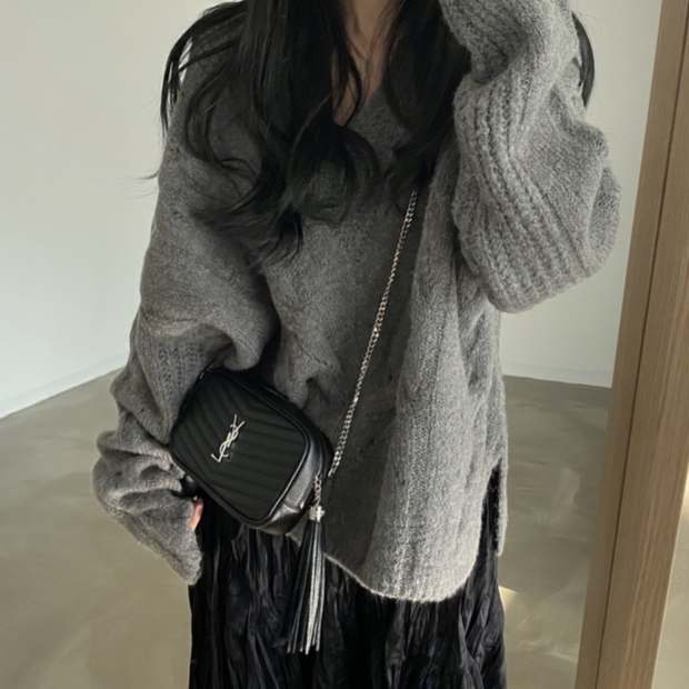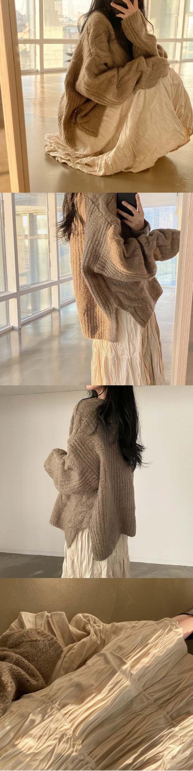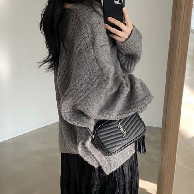 色:アプリコットセーター,グレーのセーター,アプリコットスカート,黒スカート