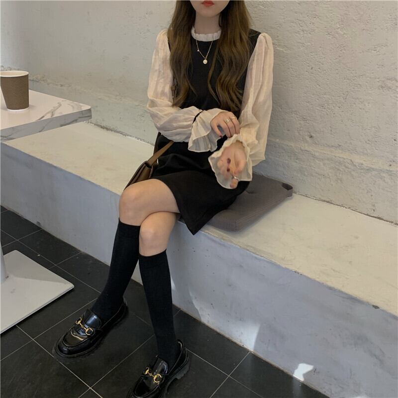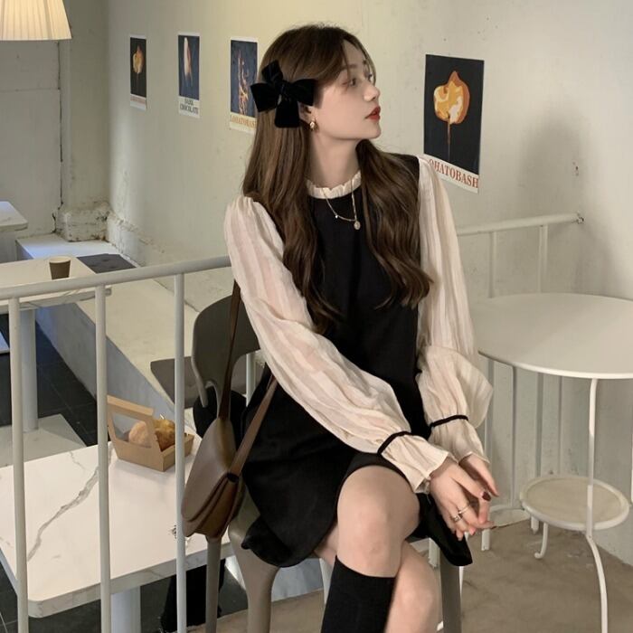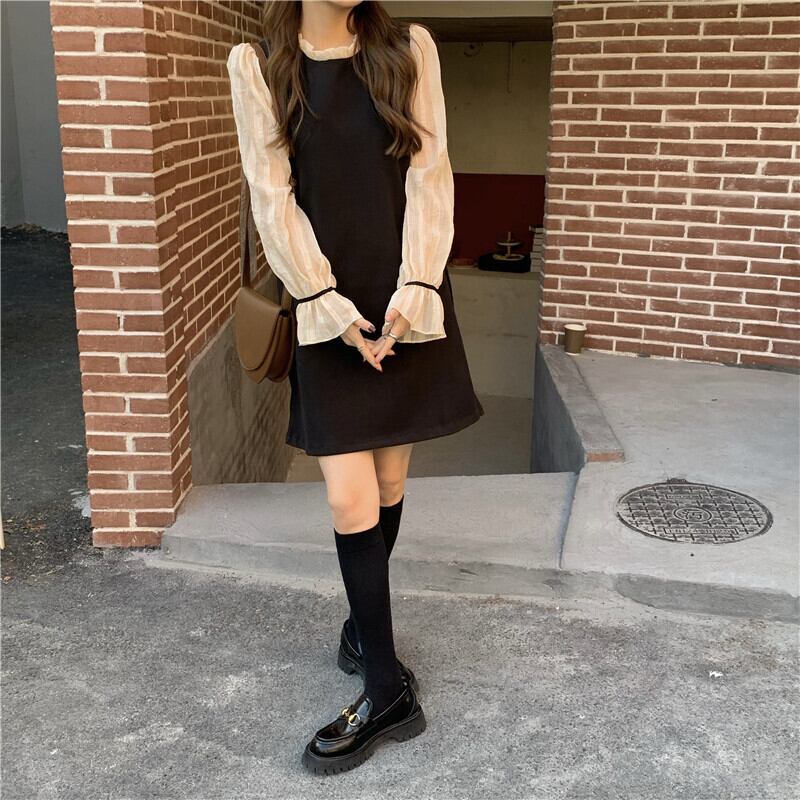 スタンダードドレス オータムウィンタースカート ルーズショートブラック レトロ 秋物 冬物 モンロー35774412474