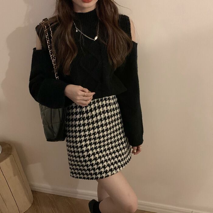 色:黒のスカート10695,ブラウンスカート10695,アプリコットセーター20113