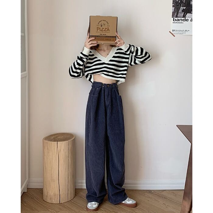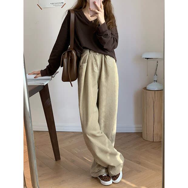 スタンダードパンツ オータムウィンタースタイルハイウェストルーズカジュアル レトロ 秋物 冬物 モンロー6675583711
