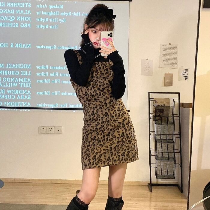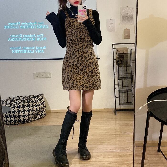 レオパードプリント柄ドレス スプリングスカート スタンダードショート レトロ 春物 モンロー50266971924