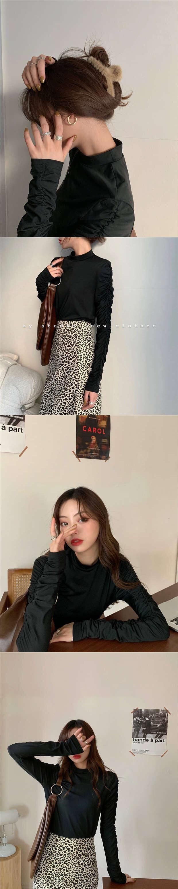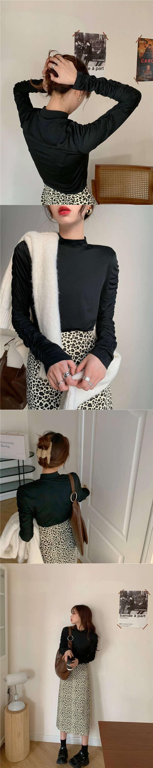 ラウンドネックブラックTシャツ シャツ スタイルスリムオータムウィンタートップス ロング 秋物 冬物 Oネック モンロー13093801538