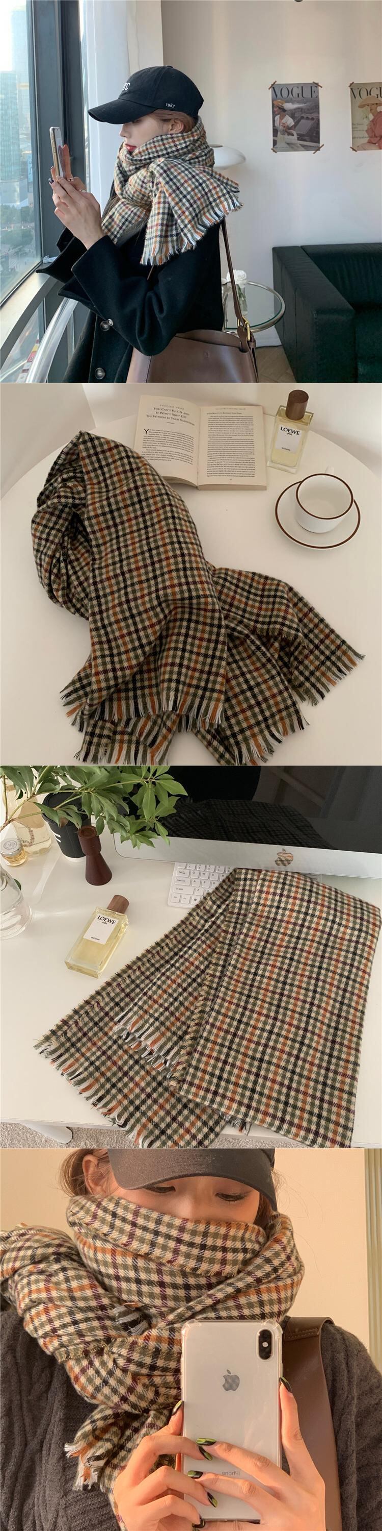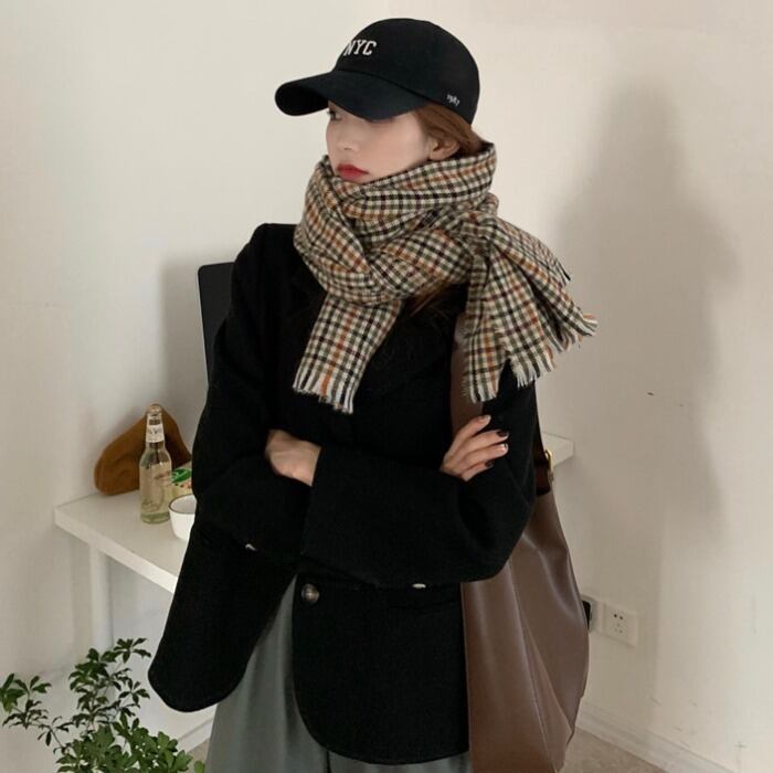 スタンダードオータムウィンター格子柄スカーフ カジュアル レトロ 秋物 冬物 モンロー39626783334
