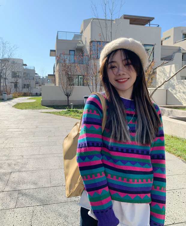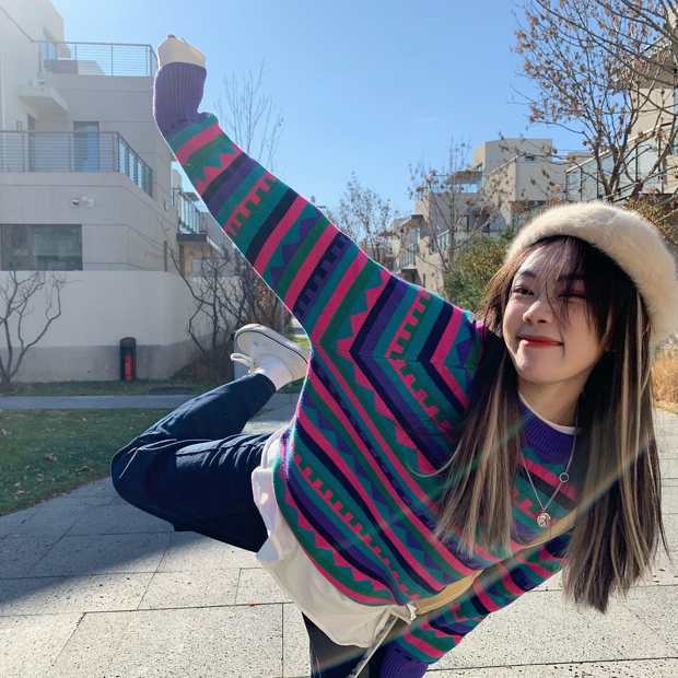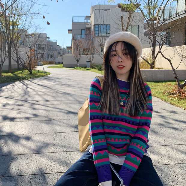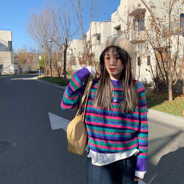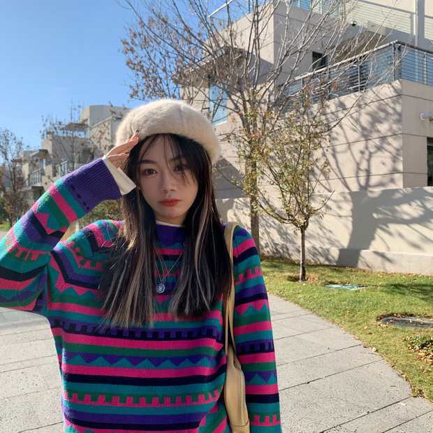 スタンダードストライププルオーバー セーター オータムウィンタールーズニットトップス コート レトロ 秋物 冬物 モンロー96366958825