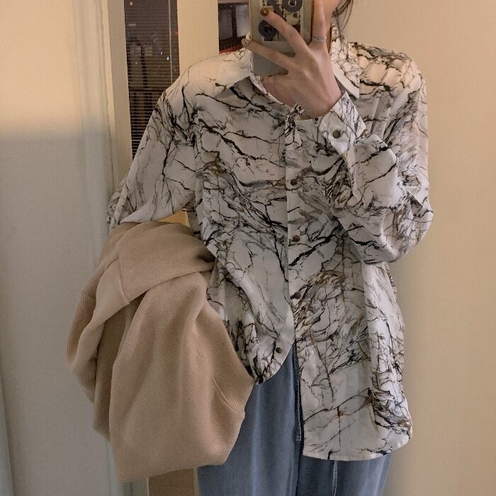 シャツ オータムウィンタースタンダードルーズトップス コート ロング レトロ 秋物 冬物 モンロー70826671096