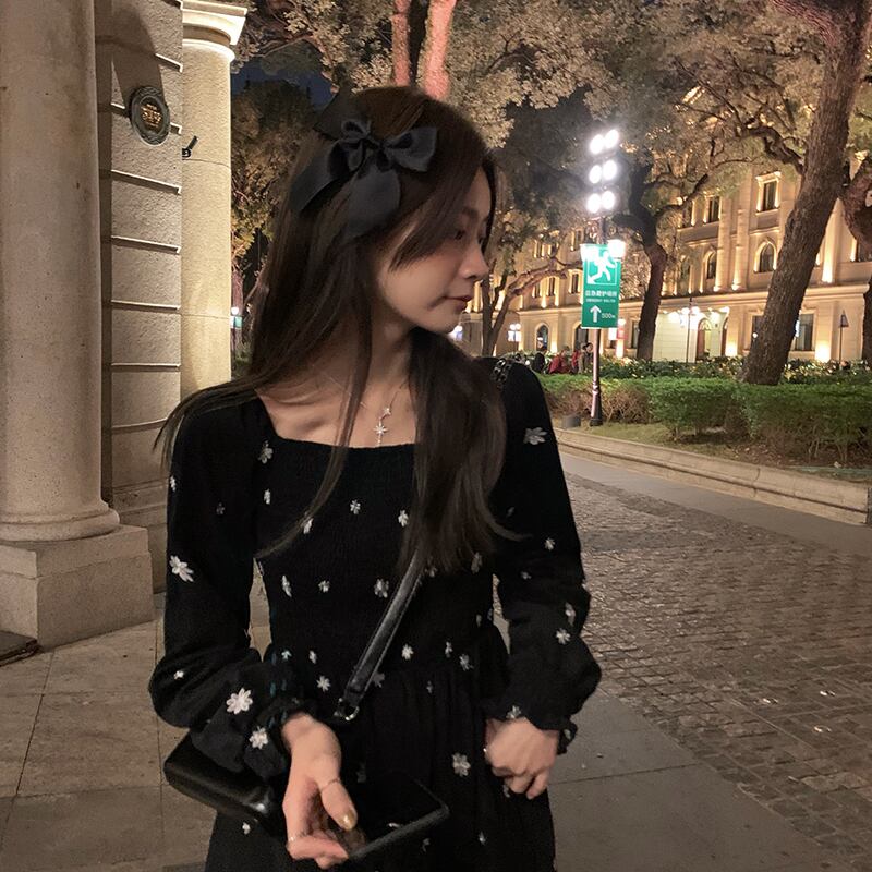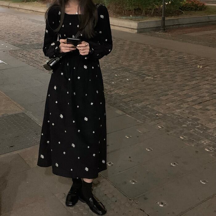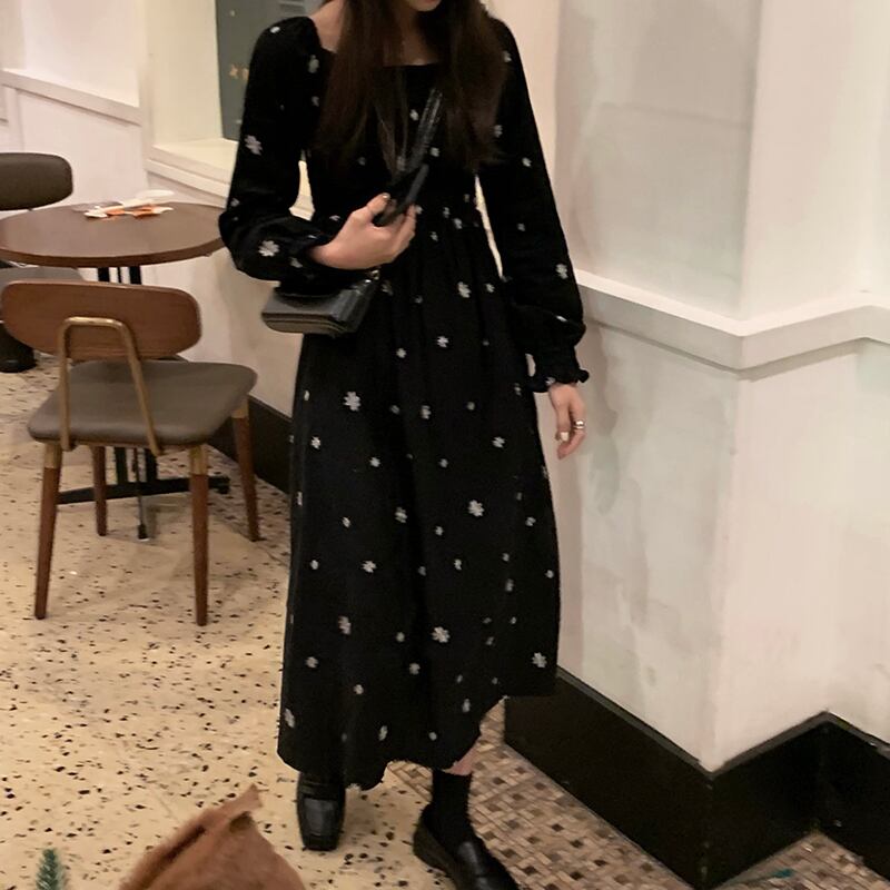 スタンダードドレス オータムウィンタースカート ブラックロング レトロ 秋物 冬物 モンロー52587549642
