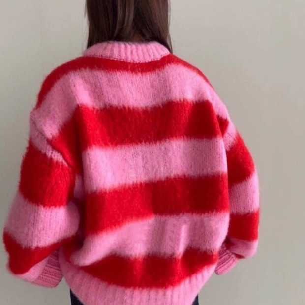 スタイルレッドセーター ルーズオータムウィンターラウンドネックコート ジャケット ロング 秋物 冬物 Oネック モンロー9732370059
