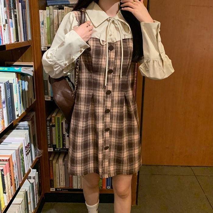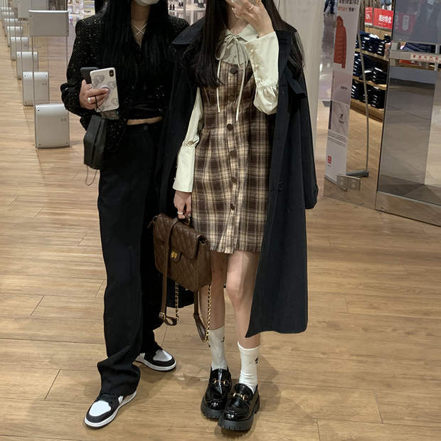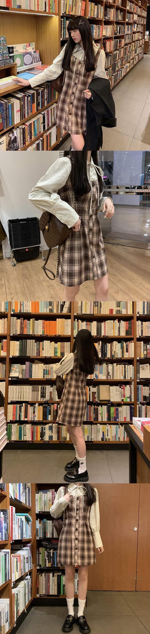 スタンダード格子柄ドレス スタイルオータムウィンタースカート レトロ 秋物 冬物 モンロー37392254780