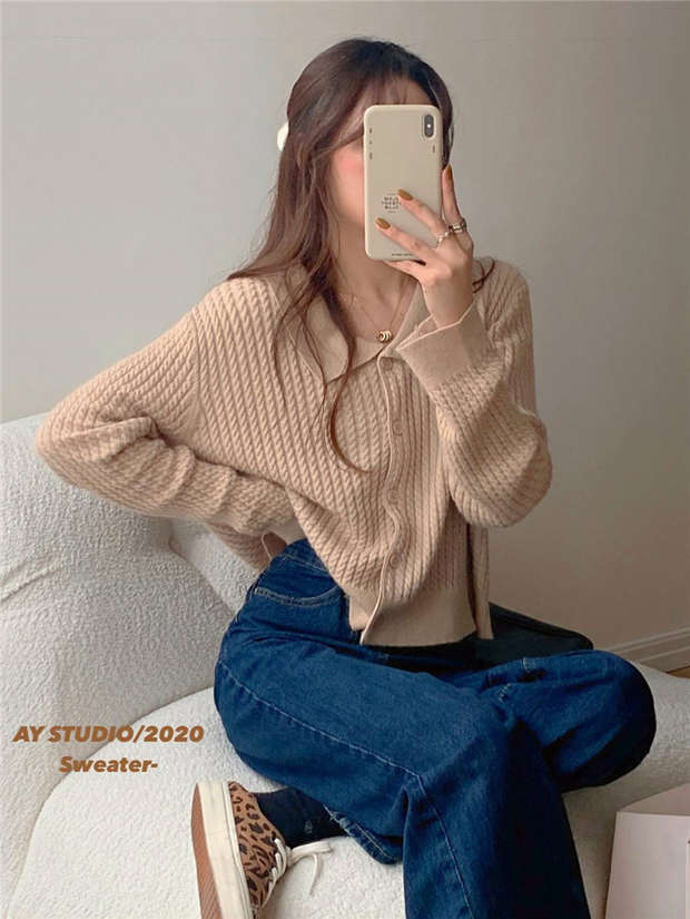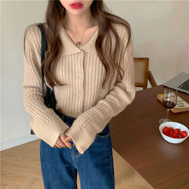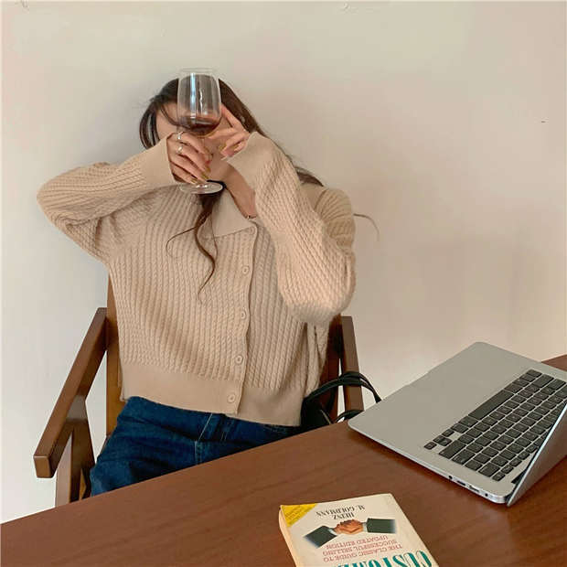 薄手ニットセーター シャツ スプリングスリムクロップドトップス コート カーディガン ロング 春物 モンロー8946284222