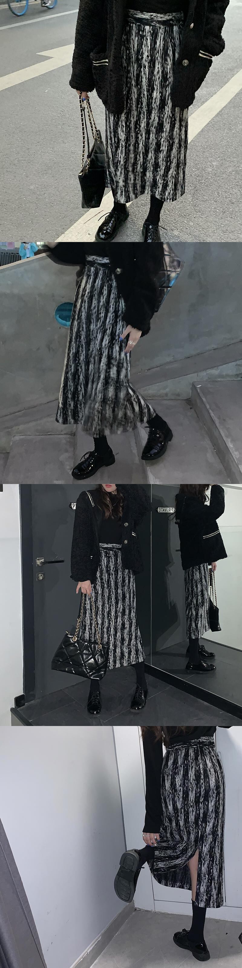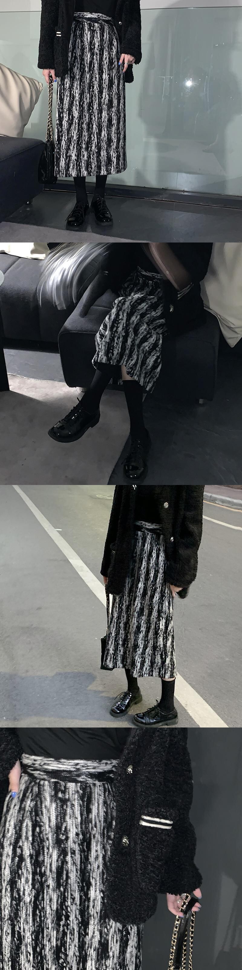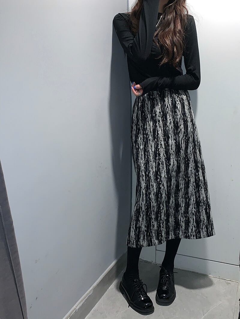 スタンダードストライプスカート オータムウィンターハイウェストウェストAライン レトロ 秋物 冬物 モンロー44113302353