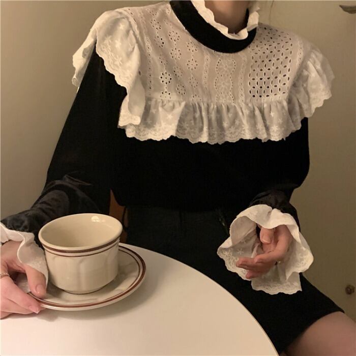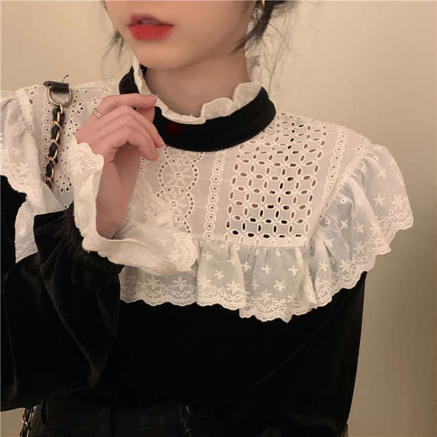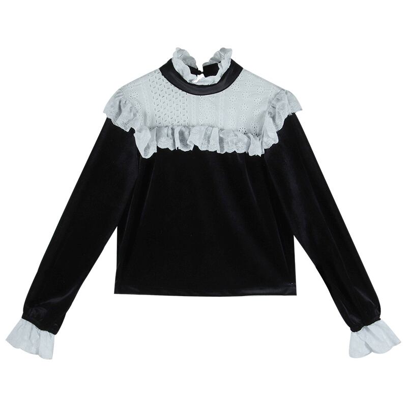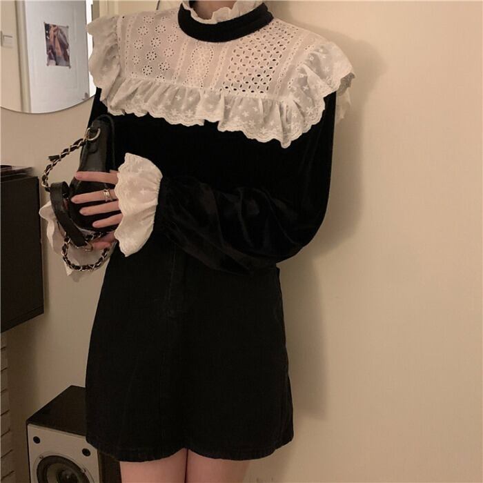 ベルベットシャツ スタンダードスプリングウィンターショートブラックトップス ロング レトロ 春物 冬物 モンロー66089004012