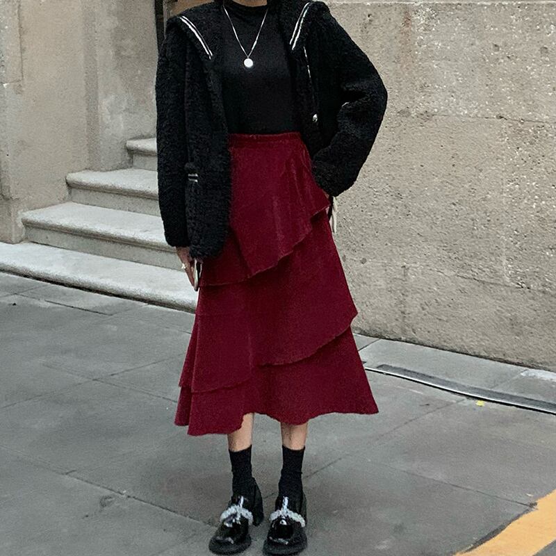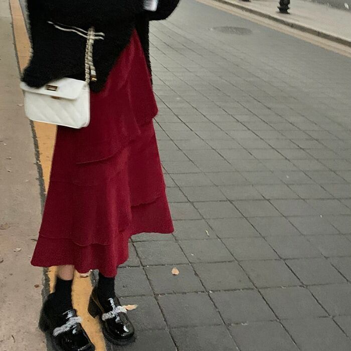 ウェストレッドスカート オータムウィンター薄手Aラインロング 秋物 冬物 モンロー46059931095